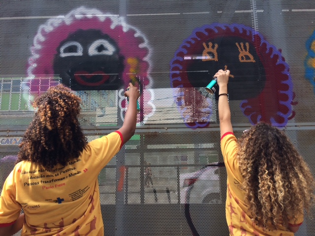 Entre as atividades lúdico-formativas do projeto, está a iniciação a arte do grafite que acontece no Conselho de Moradores da Vila 27 de Abril.