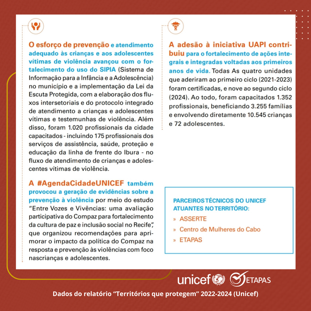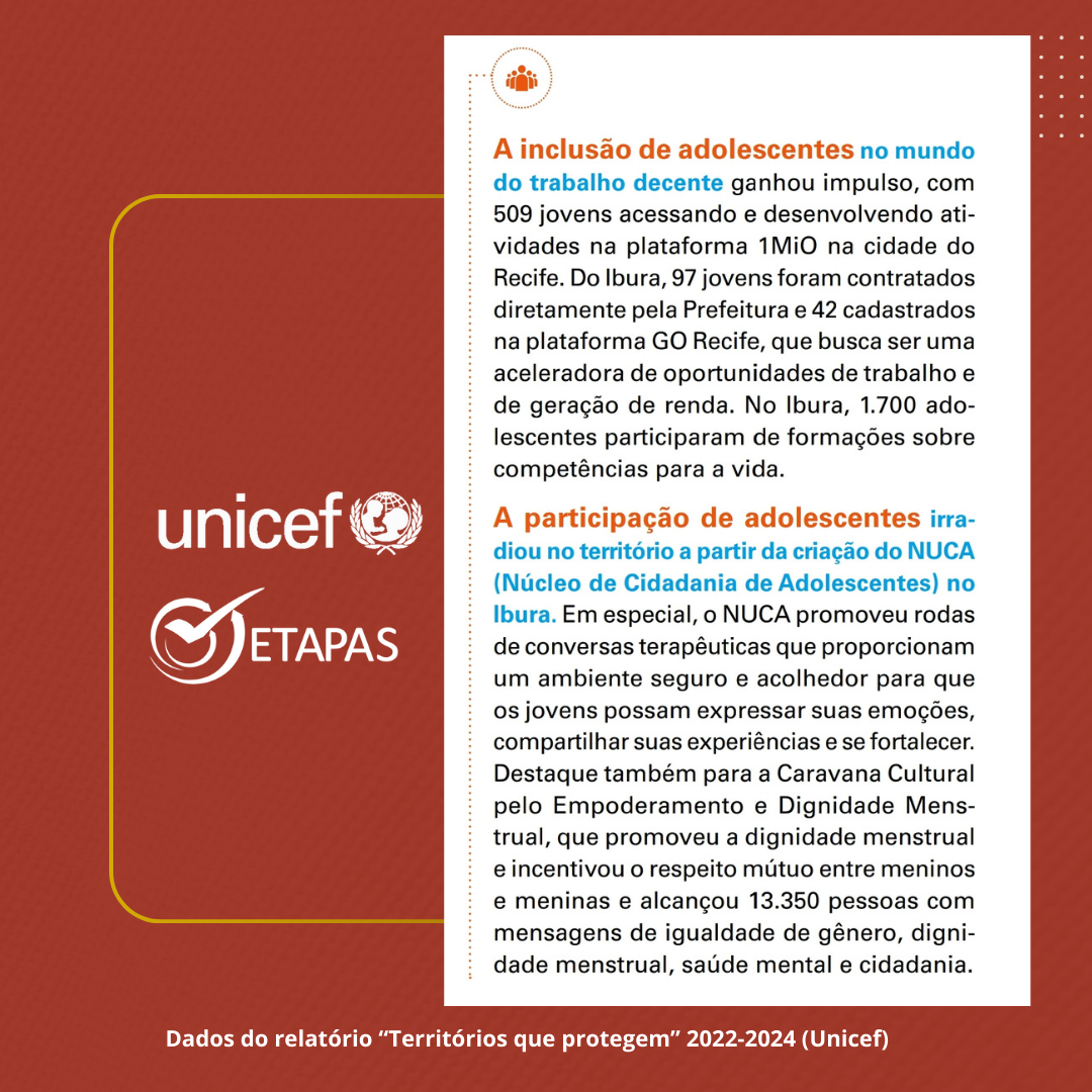 Balanço da parceria Etapas e Unicef em prol dos direitos de crianças e adolescentes do Ibura