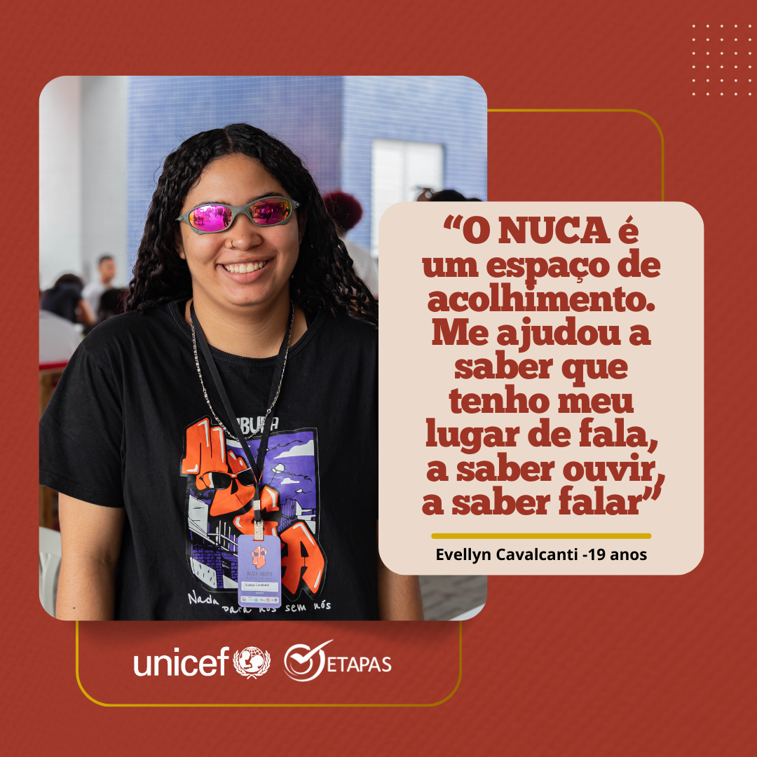 Para Evellyn Cavalcanti, O NUCA se tornou um espaço de acolhimento. “Me ajudou a saber que tenho meu lugar de fala, a saber ouvir, a saber falar”, pontua.