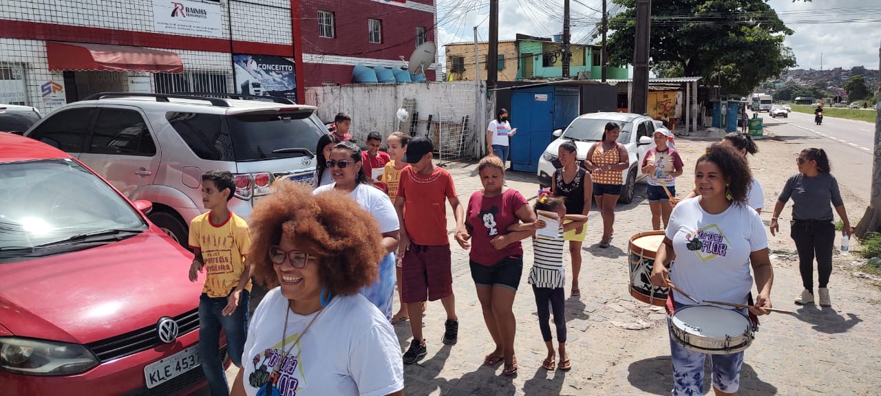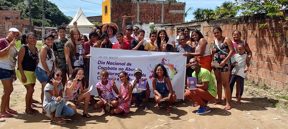 Crianças,adolescentes e famílias vão às ruas com batucada e entrega de informativos para alertar a comunidade sobre o combate ao abuso e exploração sexual de crianças e adolescente