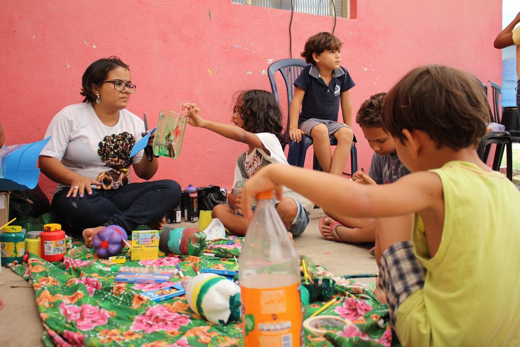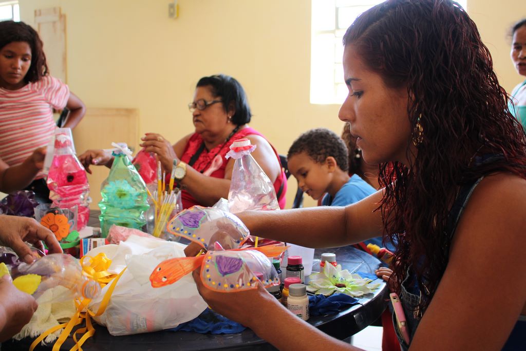 O Dia da Reciclagem contemplou adultos e crianças. Voluntários com habilidades artísticas e cheios de solidariedade, ensinaram as famílias que passaram no local, a confeccionar decorações para o lar e brinquedos reutilizando garrafas pet.