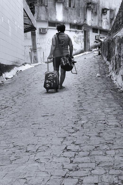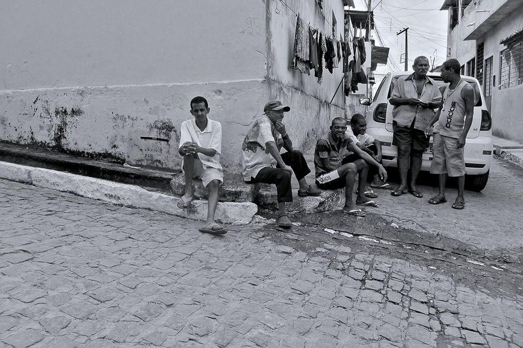 O resultado foram fotos sensíveis que imprimem a realidade, no preto e no branco, de uma comunidade construída em cima de barreiras, com um comércio fervilhante, trânsito de ônibus, carros, motos, gentes e animais por ruas estreitas e riqueza de detalhes nas fachadas das casas.