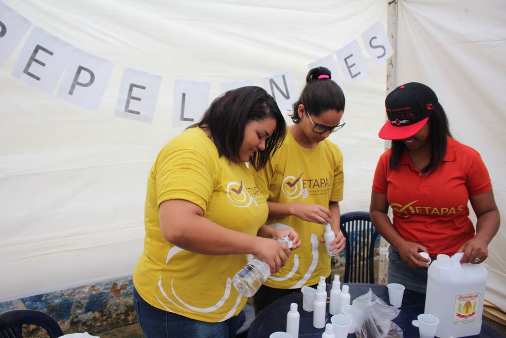 A equipe Etapas formada por Lea e Alane e Denise ensinou a produzir repelentes caseiros.