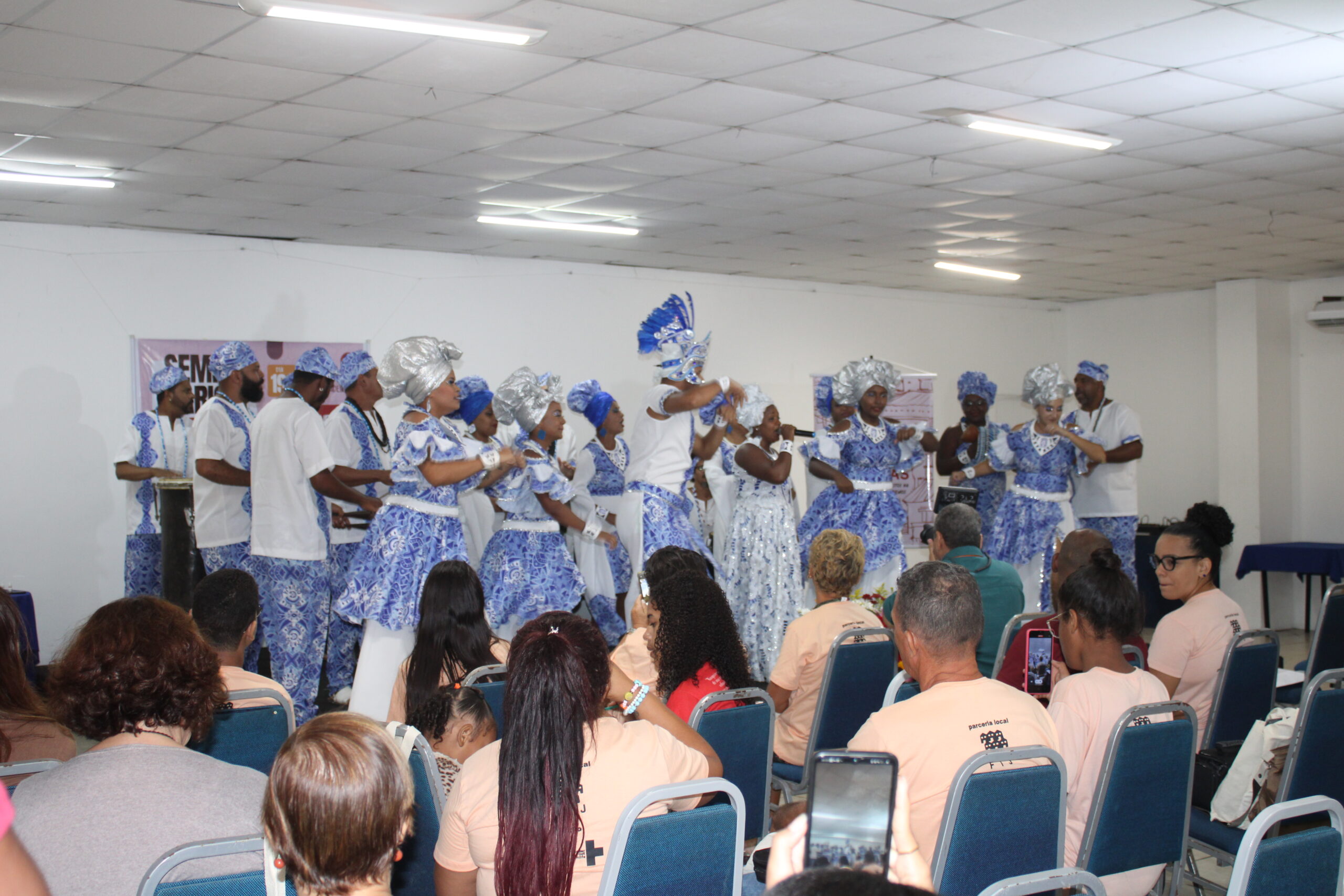 A abertura do seminário foi realizada pelo Afoxé Omô Nilê Ogunjá (grupo do Ibura), com muita cultura, música e dança afro.